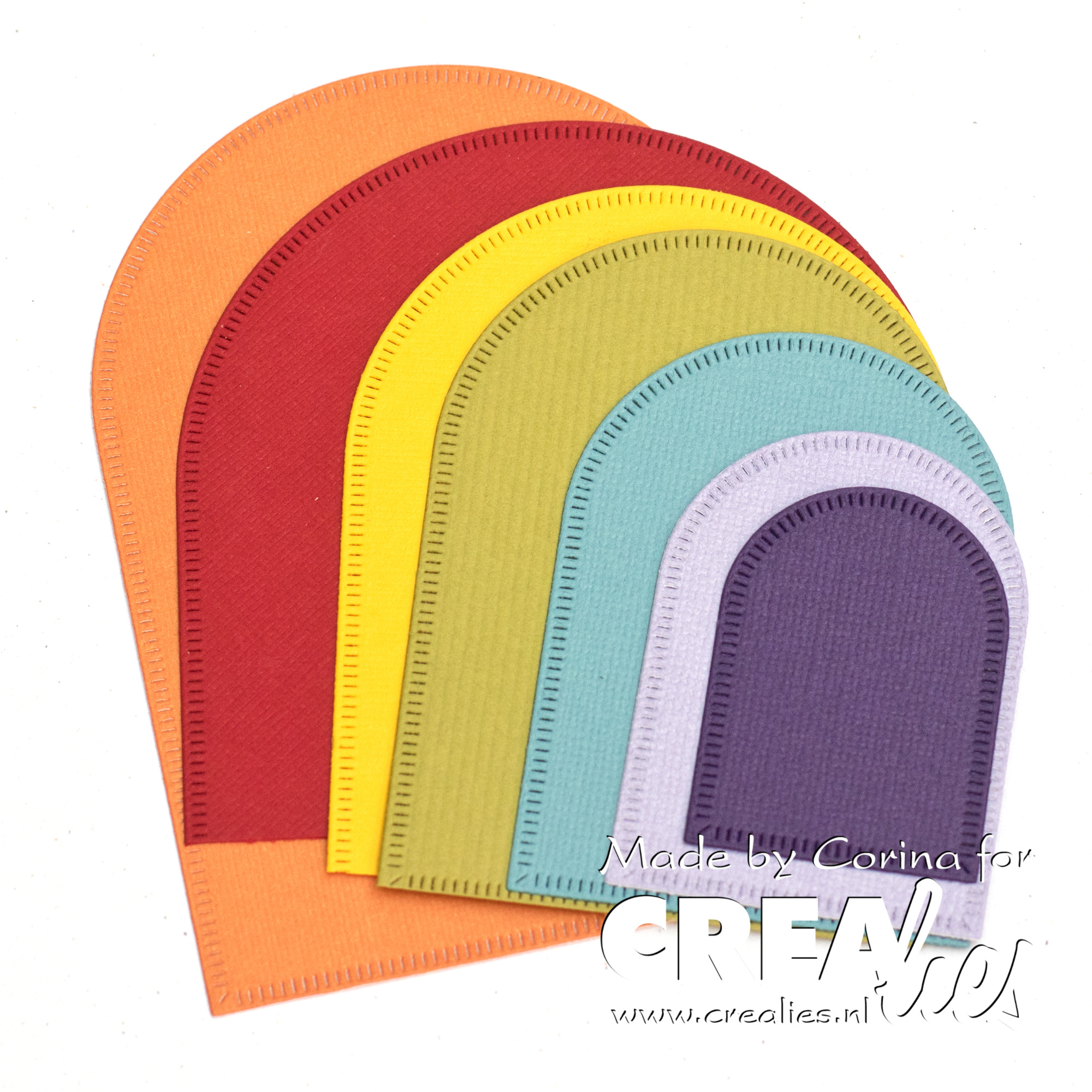 Set met 9 stansen in de vorm van een boog met kleine streepjes aan de rand, in oplopende maat: