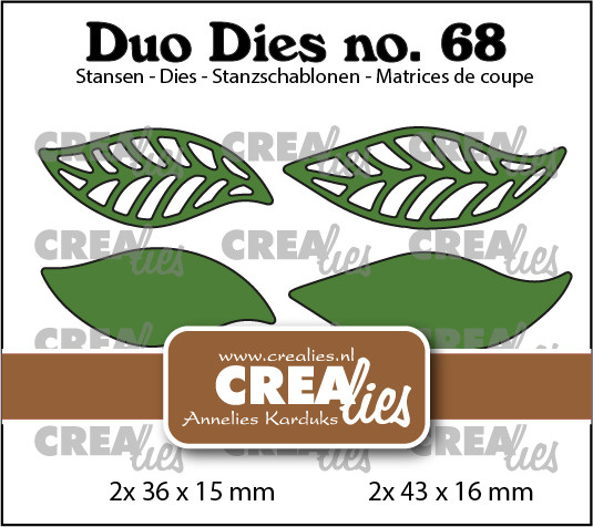 Stansset met 4 blaadjes, 2x open en 2x dicht2x 43 x 16 mm - 2x 36 x 15 mm.