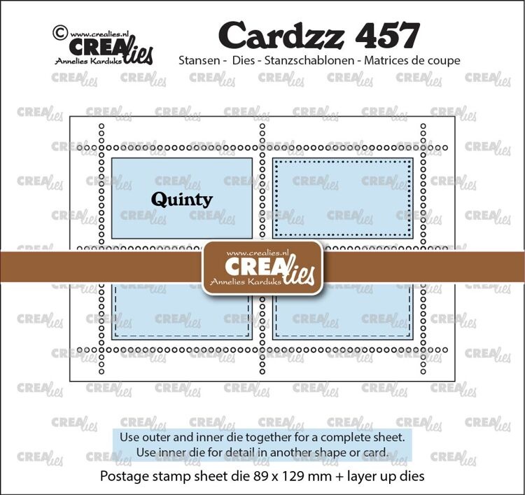 Stansset om een rechthoekige postzegelvel te maken met 4 rechthoeken.Afmetingen: 89 x 129 mm