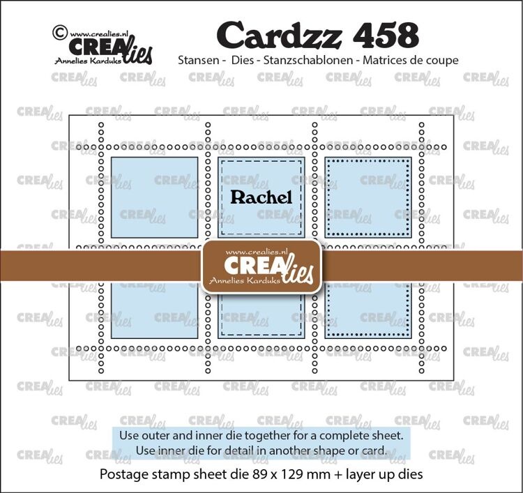 Stansset om een rechthoekige postzegelvel te maken met 6 rechthoeken.Afmetingen: 89 x 129 mm