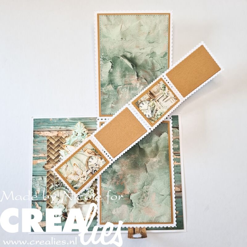 Het mechanisme zorgt ervoor dat bij het openen van de kaart de panelen diagonaal naar buiten draaien (de "twist").