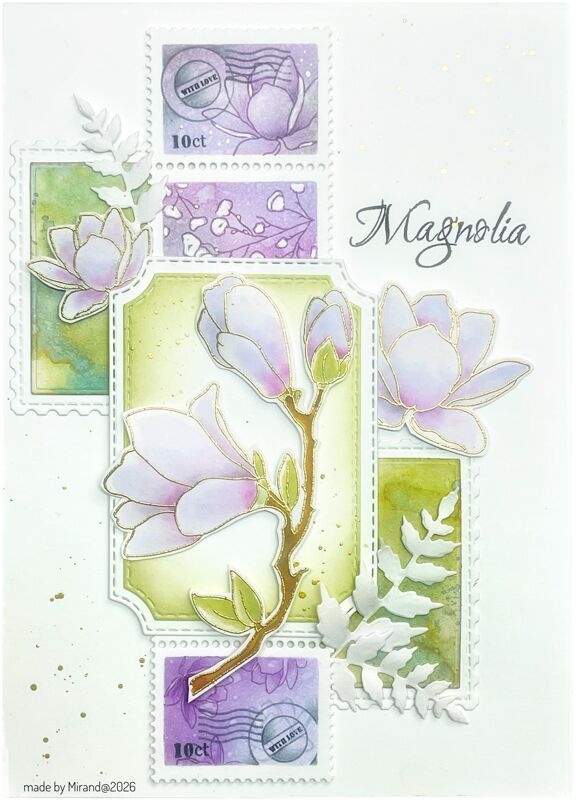 A6 stempelvel van grijs rubber (zonder EZ mount) van Magnolia, en andere bloesemtakken.