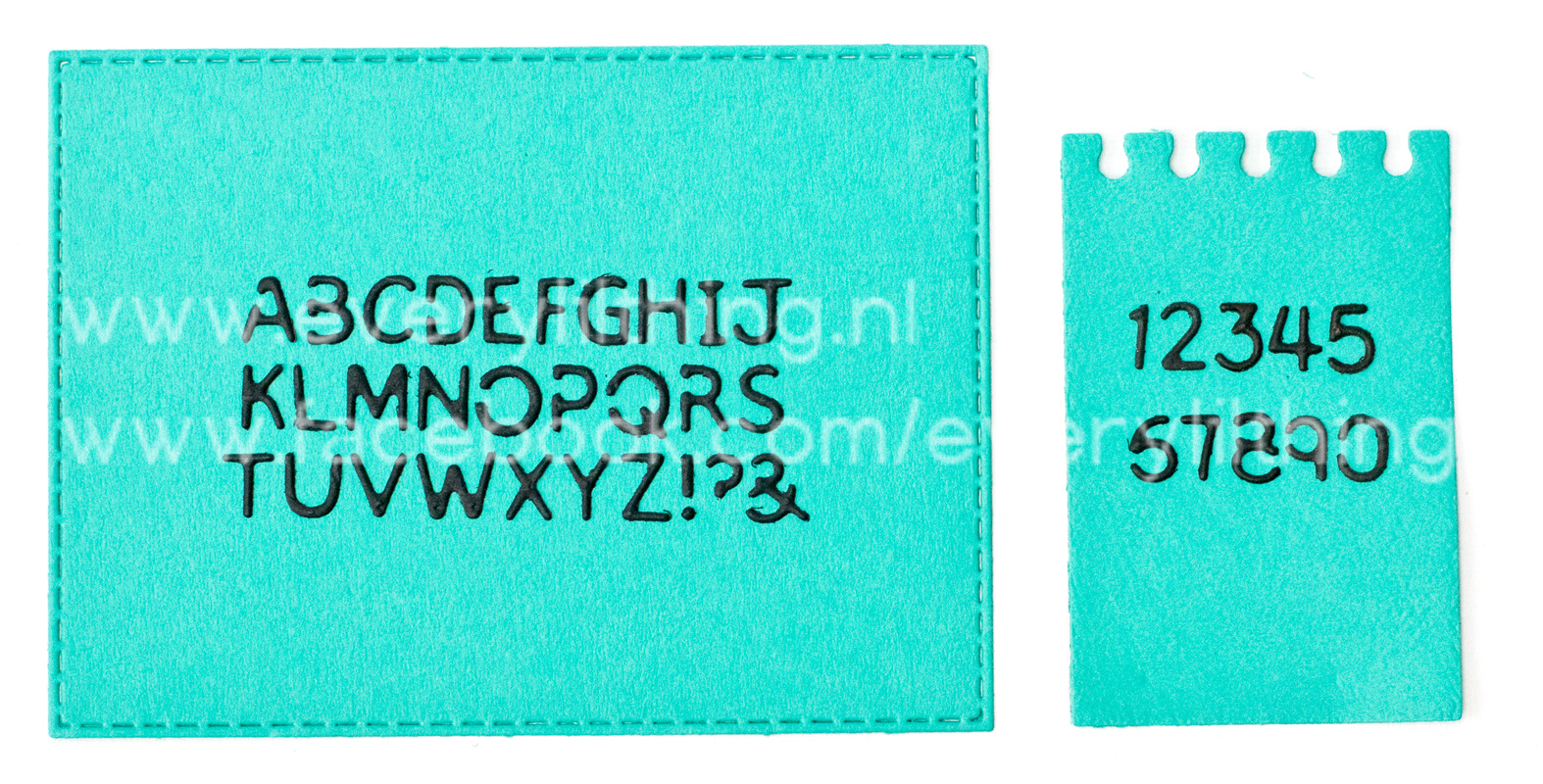 Stansje met losse letters van 6,6 mm hoog.