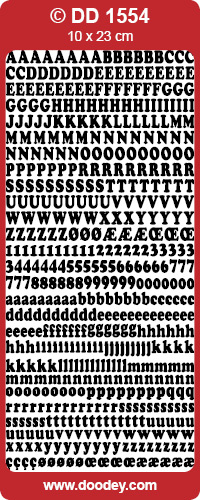 Stickervel (10x23 cm) met extra kleine zwarte letters en cijfers (1554 stuks)