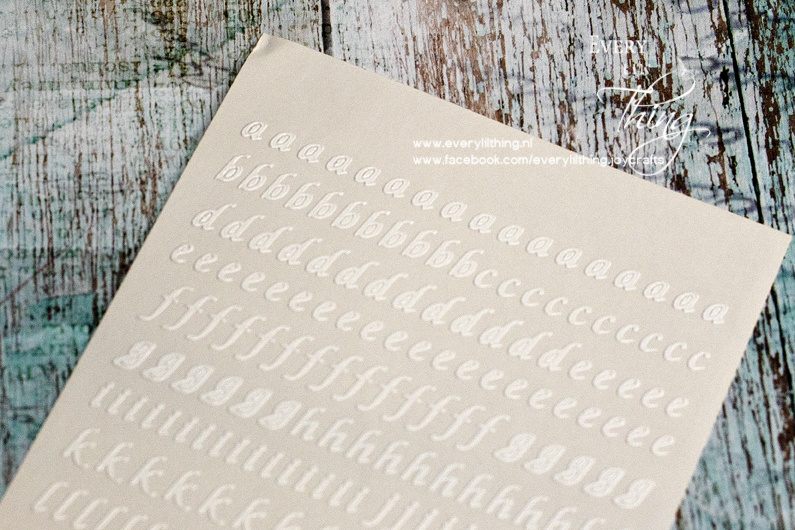 Stickervel (10x23 cm) met kleine witte sierlijke letters