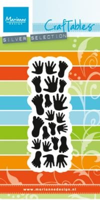 Stansmal met 22 kleine handjes en voetjes (gemiddeld 2,5 cm) in verschillende maten.