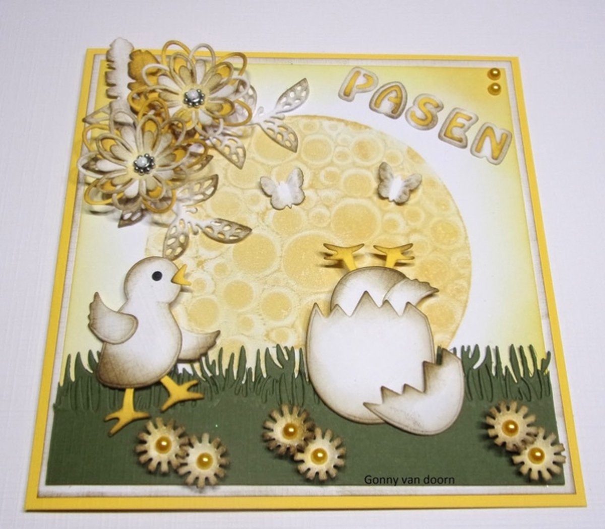 Stansset met een kip, eieren en bijpassende decoratieve elementen