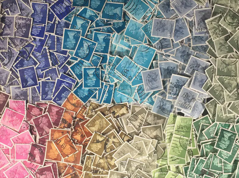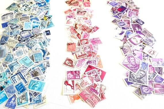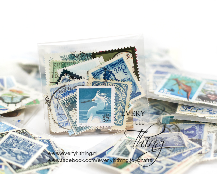 Zakje met 20 blauwe postzegels.Gestempeld en met de hand gesorteerd.(niet bruikbaar om post te versturen)