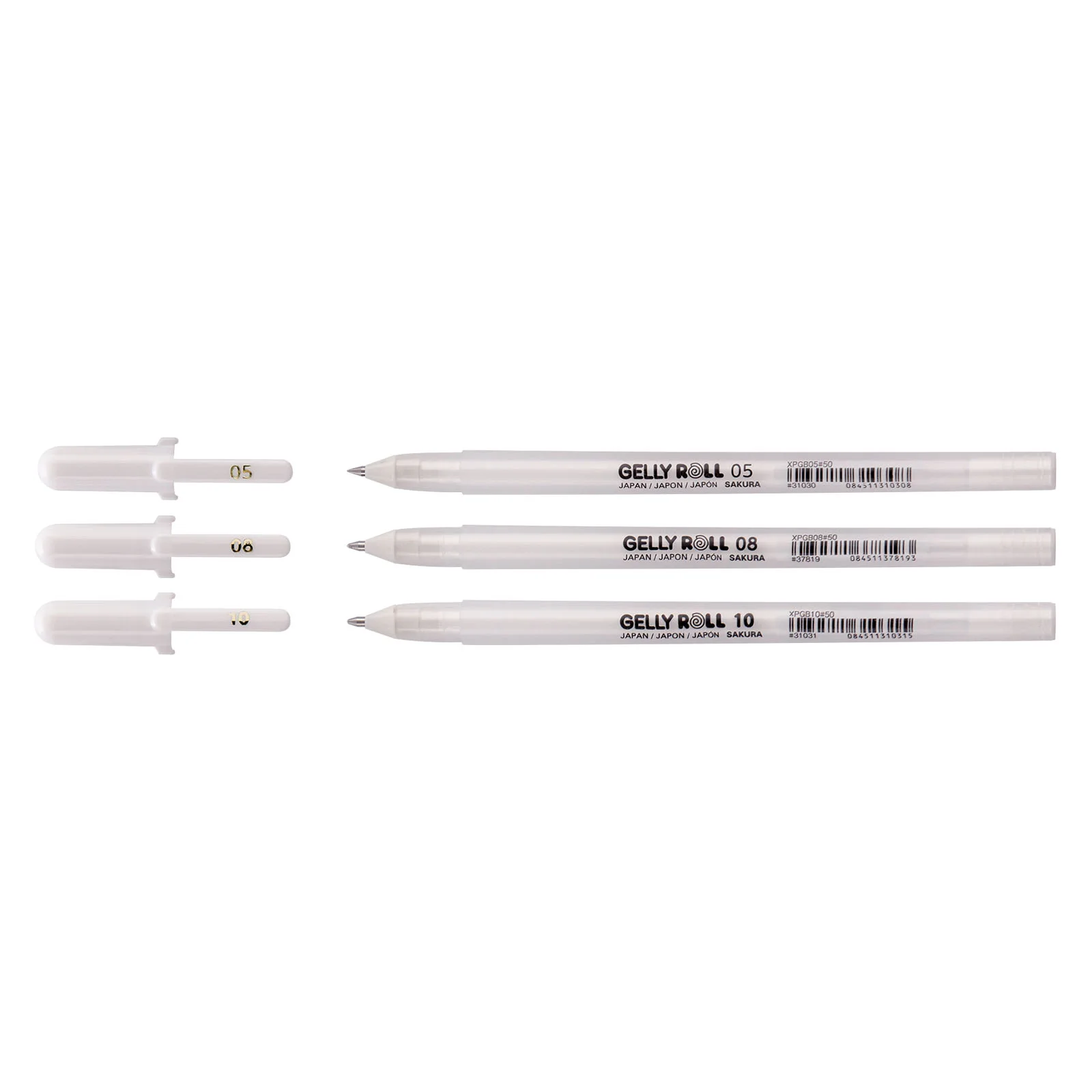 Gelly Roll Fine, Medium & Bold nr. 05, 08 & 10, wit 3-delige set met briljante witte tint.
