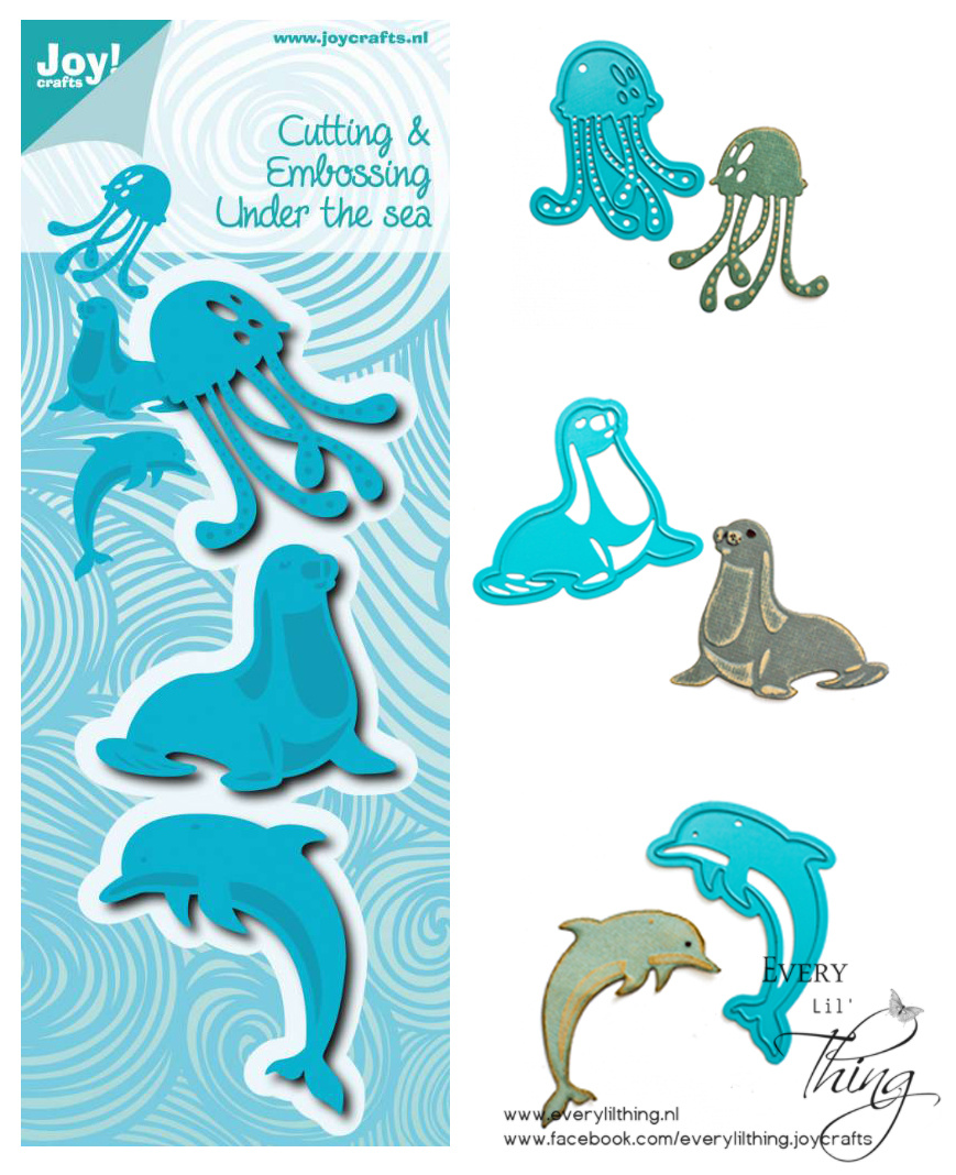 Snij-embosstencil - Zeehond, Dolfijn, Kwal