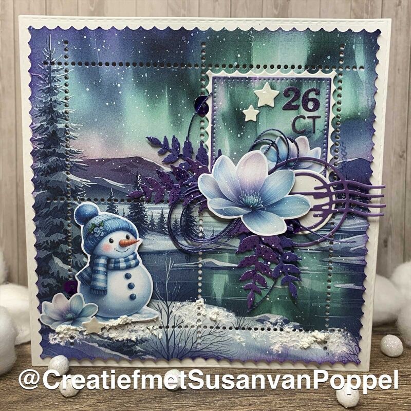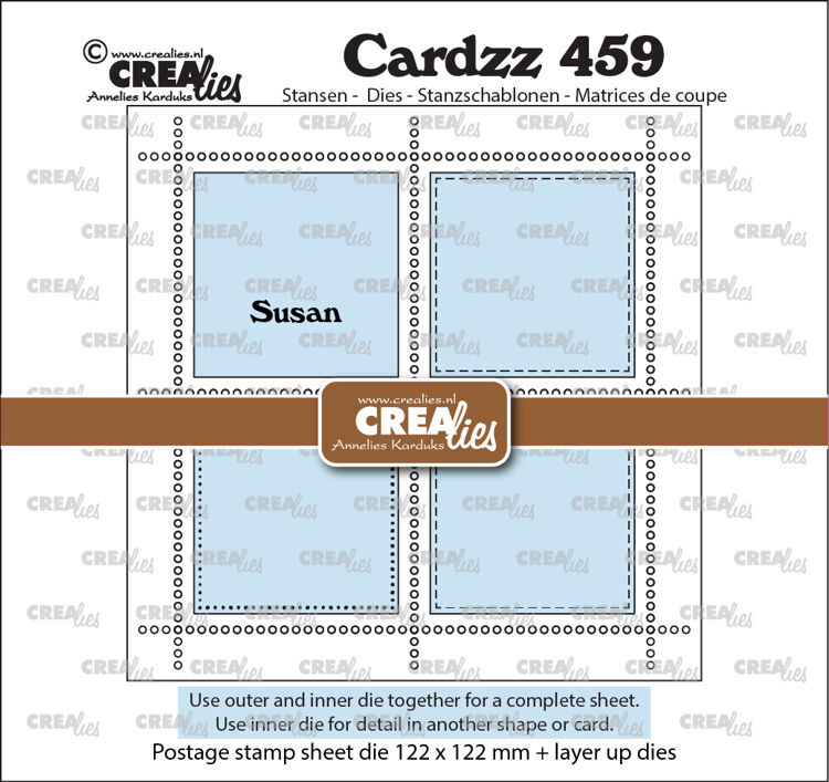 Stansset om een vierkante postzegelvel te maken met 4 vierkante postzegels.Afmetingen: 122 x 122 mm