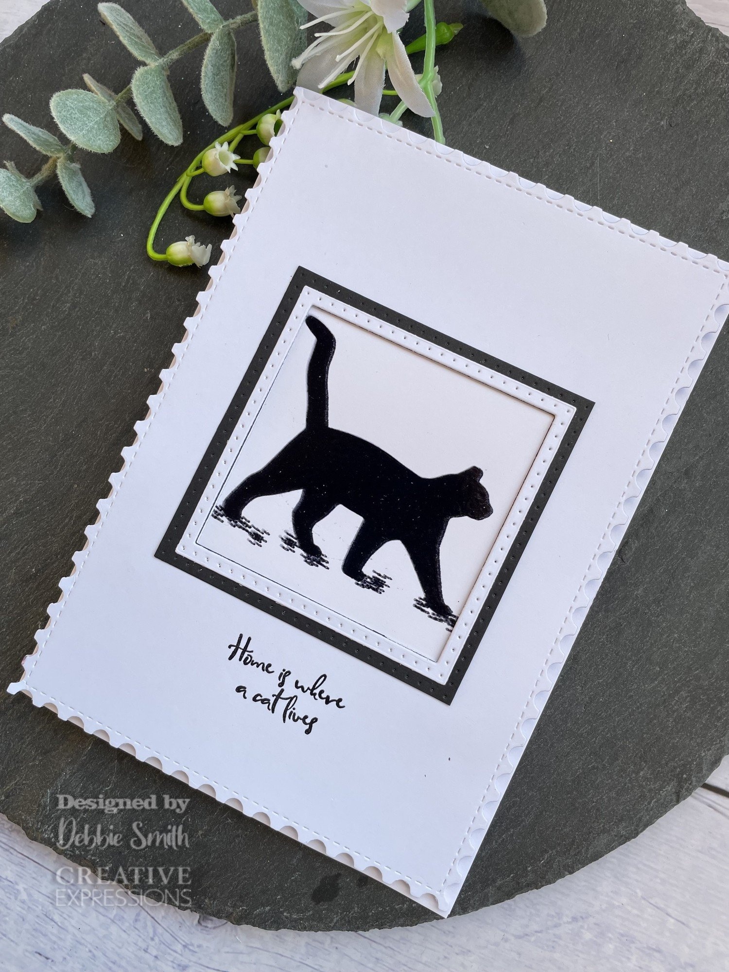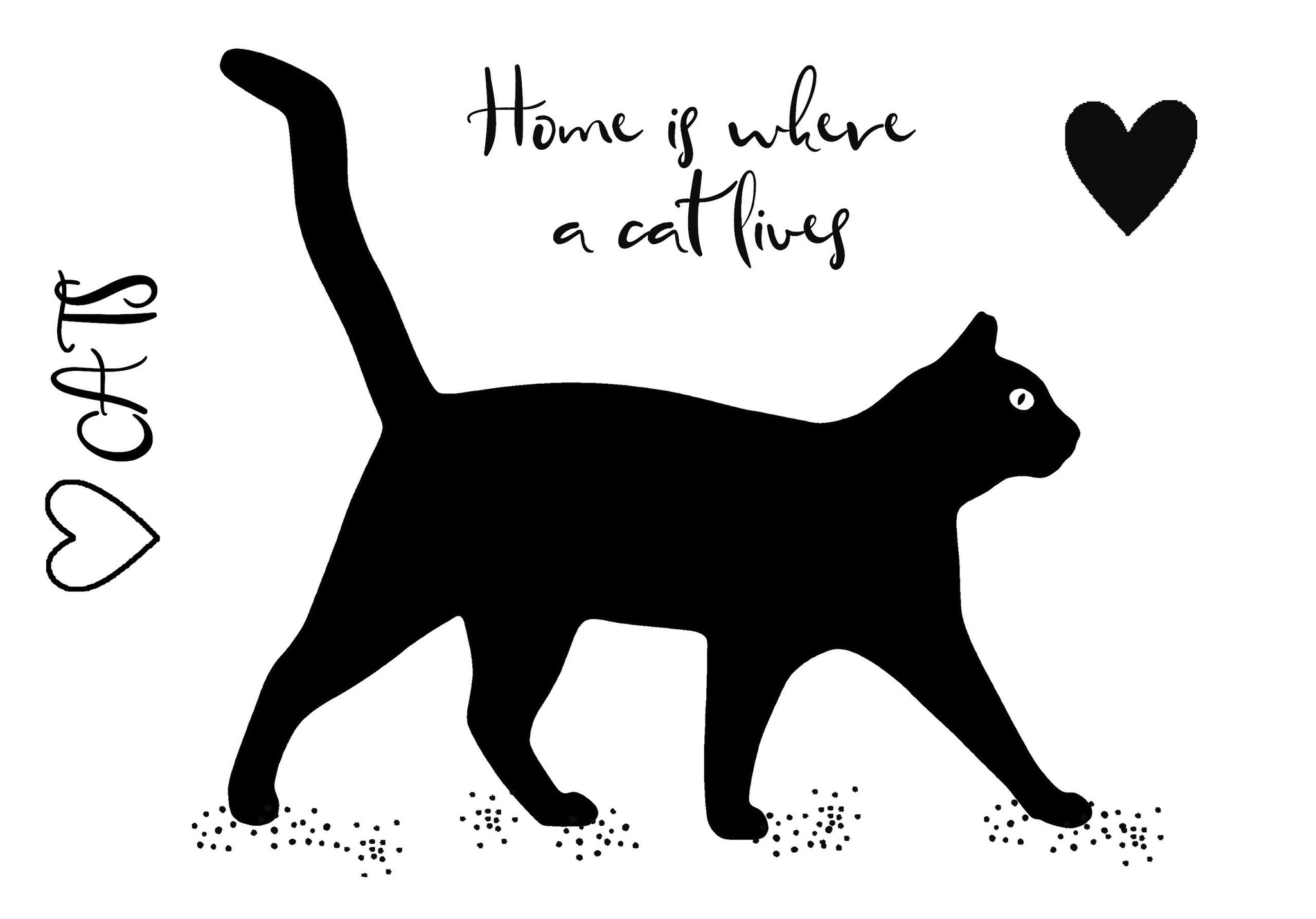 Stempel met een silhouet van een kat & enkele teksten